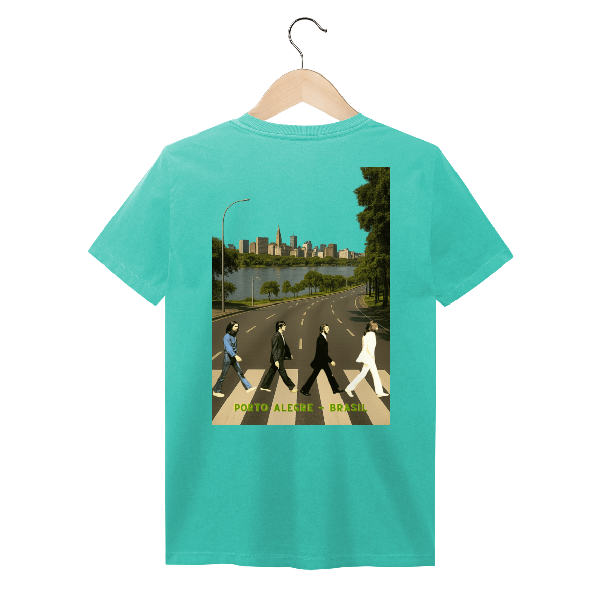 Camisa estonada dos Beatles imitando Abbey Road em Porto Alegre