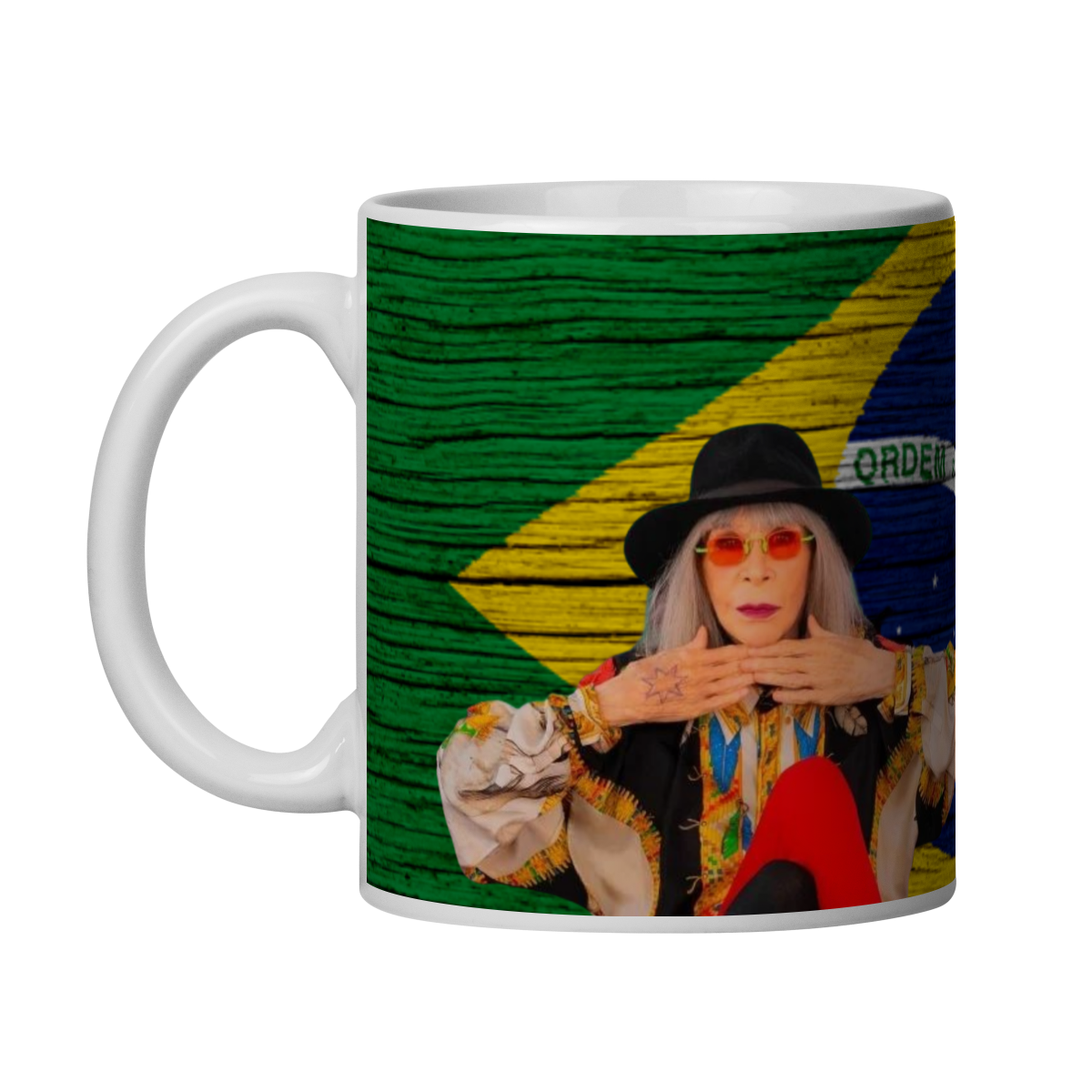 Caneca de Rita Lee com a bandeira do Brasil